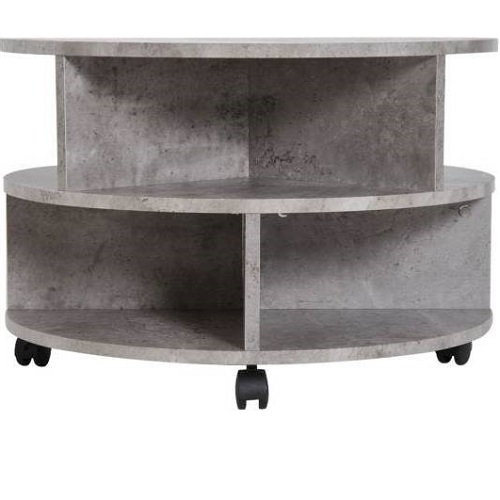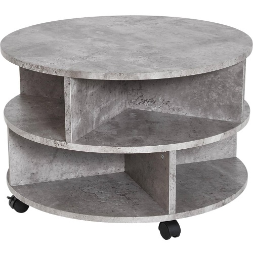 HOMCOM 3 Tier Coffee Table Round Rolling Centre Table w/ Wheels Cement Description