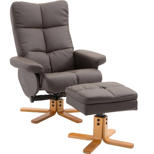 HOMCOM Recliner Chair and Footstool PU Leather Wooden Base Brown Description
